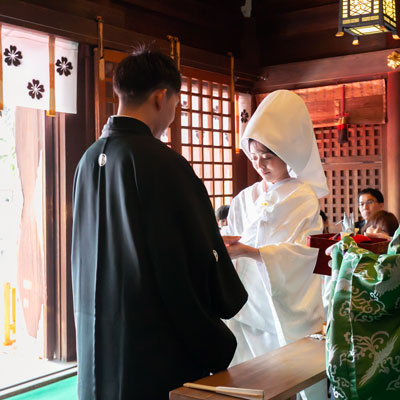一般では立ち入れない本殿での神前挙式は、まさに姫路護国神社ならでは