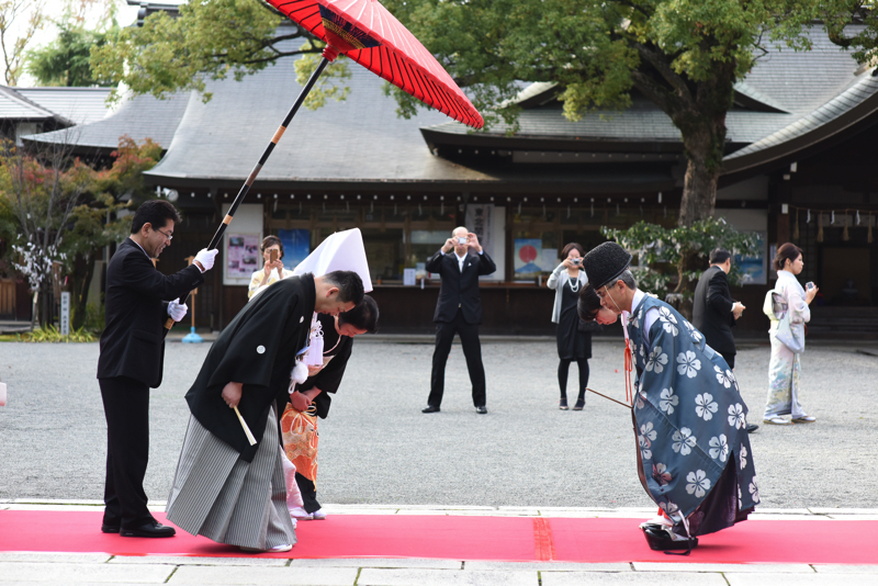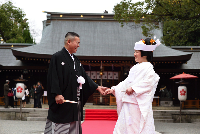 以前から神前挙式をやりたいと決めていたことと、姫路市に引っ越ししてきたので姫路城の見えるこの護国神社で是非挙式をしたいと思いました。厳かな雰囲気が良かったです。